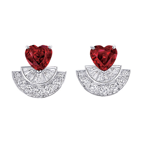 트라이벌 컬렉션 하트 셰이프 루비와 멀티 셰이프 다이아몬드 세팅 이어링