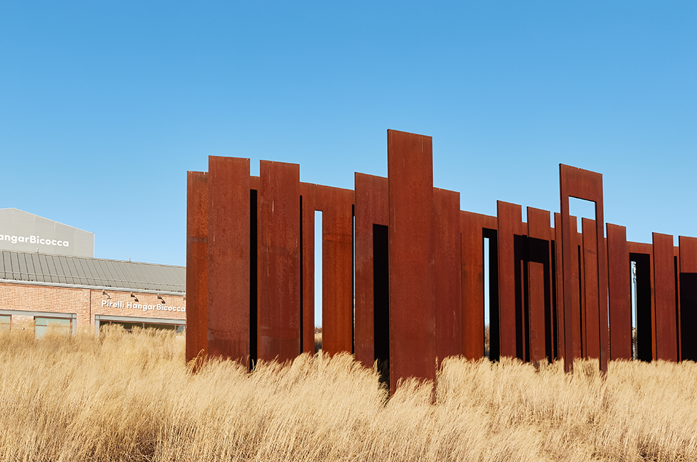 밀라노 외곽에 있는 비영리 아트 스페이스 피렐리 안가르비코카(Pirelli HangarBicocca, 이하 PHB) 정원에 있는 파우스토 멜로티(Fausto Melotti, 1901~1986)의 조각 작품. Fausto Melotti, La Sequenza, 1971-81, Installation vie wat Pirelli HangarBicocca, 2024. Courtesy Pirelli HangarBicocca, Milan and Fondazione Fausto Melotti, Milan © Fausto Melotti, by SIAE 2024 Photo by Agostino Osio