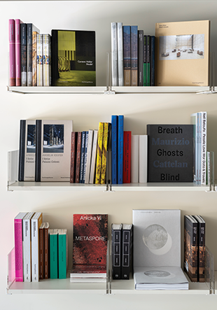 PHB의 서점에 있는 전시 도록 모음. Courtesy Pirelli HangarBicocca, Milan Photo by Lorenzo Palmieri