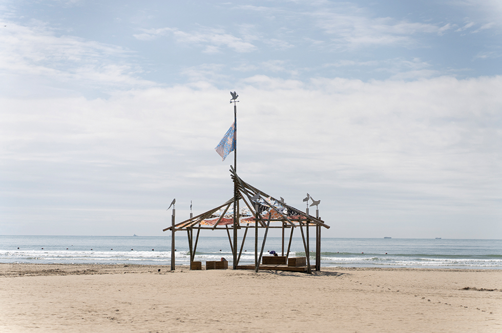 다대포가 이주와 상실의 흔적이 스며든 땅임을 일깨워주는 김상돈 작가의 작업 ‘알 그리고 등대’(2025)는 마치 신라와 백제시대의 금관처럼 바다 앞을 지키고 있다. 철과 거울, 방울, 볼록렌즈로 이루어진 작품은 바람이 불 때마다 신비한 소리를 들려준다. ‘자연의 힘은 누가 통제하는가?’라는 질문에서 시작한 라울 발히의 ‘바람은 누구의 것인가?’는 대나무와 천으로 만든 텐트 모양의 작품인데, 다대포해수욕장을 보헤미안적으로 보이게 한다. 이곳에서 바람의 움직임이나 새 모양으로 만든 풍향계로 자연의 움직임을 관찰할 수 있다(연날리기 워크숍도 있다). 식물과 함께하는 낭독 경험을 제안하는 우리엘 올로브의 작품 ‘함께, 걷고, 사유하고(부산)’도 아름답다. 포스터의 안내를 따라 식물 앞에서 글을 읽고, 식물을 친구 삼아 다대포 바닷가를 산책할 수 있는 프로젝트. 여정의 끝은 다대포해수욕장역에 설치된 이진 작가의 ‘물결의 되울림’이었다. 16세기부터 현재까지 다대포 조수 데이터를 수집해 해안선의 시간적 변화를 구성한 작품은 잃어버린 바다의 흐름을 상징적으로 표현했다. 기후와 환경에 대한 고민, 여러 종에 대한 고찰, 지나간 시간에 담긴 바다의 기억이 바람결처럼 머무는 순간이었다.