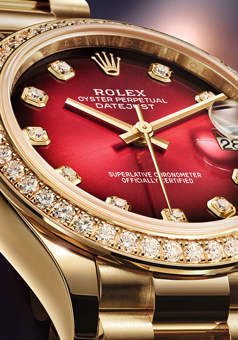 브랜드의 아이코닉한 워치, 롤렉스 오이스터 퍼페츄얼 데이저스트 31이 강렬한 레드 옴브레 컬러 다이얼로 선보여 또 한번 우리의 마음을 설레게 한다. 마치 태양 광선처럼 빛과 그늘의 교감을 미묘한 그러데이션 효과로 표현해 더욱 매력적이다. 여기에 18K 옐로 골드로 제작한 프레지던트 브레이슬릿을 매치하고 46개의 브릴리언트 컷 다이아몬드를 세팅해 반짝임을 더했다. 100m 방수나 크로노그래프 성능을 갖춘 칼리버 2236으로 구동해 성능 또한 뒤처지지 않는다. 타임리스한 디자인에 강렬한 컬러와 성능을 적용한 완벽한 여성 워치임에 틀림없다. 문의 02-6370-4298