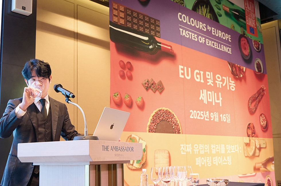 유럽연합(EU)에서 국내 식음료업계 전문가를 대상으로 ‘EU GI 및 유기농 세미나 – 진짜 유럽의 컬러를 맛보다: 페어링 테이스팅’을 성황리에 마쳤다. 이번 세미나에서는 원산지 명칭 보호(PDO)와 지리적 표시 보호(PGI)로 대표되는 지리적 표시(GI) 품질 라벨과 생산 전 과정에서 엄격한 환경 및 동물 복지 기준을 충족했음을 보증하는 EU 유기농 라벨을 집중 조명했다.