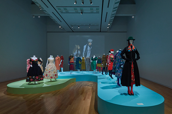 3 세계 각국의 민속 의상에서 영감받은 다양한 포클로어 룩을 마치 런웨이처럼 역동적으로 전시한 모습. © Takahashi Kenji