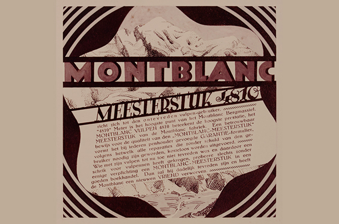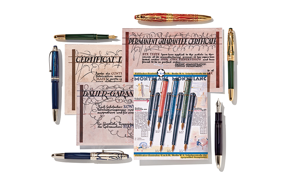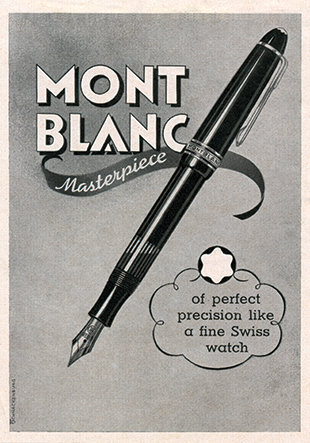 1748년 영국의 요한 얀센이 금속 펜을 발명한 이후로 금속과 여러 소재를 다듬어 더 좋은 펜을 만들기 위한 끊임없는 노력이 시작됐다. 이후 1906년 친구 사이인 함부르크의 은행가 알프레드 네헤미아스(Alfred Nehemias)와 베를린 태생의 엔지니어 아우구스트 에버스타인(August Eberstein)은 휴가차 방문한 미국에서 놀라운 파운틴 펜을 발견한다. 이 펜의 편리함에 매료된 그들은 여행에서 돌아온 후 베를린 지역에 ‘짐플리치시무스 만년필(Simplicissimus Fullhalter)’이라는 작은 만년필 제조 공방을 열었다. 이 네임은 영어의 ‘심플리스트(simplest)’와 같은 뜻으로 쓰이는데, 잉크통이 펜에 내장되어 있는 디자인의 단순함에서 착안해 공방 이름에 사용했다. 이후 1908년 함부르크의 사업가 요하네스 포스(Johannes Voss)가 합류하며 ‘심플로 필러 펜 컴퍼니’라는 사명으로 함부르크에 본사를 창립하고 회사 등록을 완료했다. 초기엔 주문을 받아 납품하며 만년필 제작에 대한 노하우를 쌓았지만, 그들의 최종 목표는 ‘고품격 골드 만년필 제작’이었다. 독일 장인들이 가지고 있는 기술로 제작한 품질 높은 만년필만이 미국 중심의 만년필 시장에서 유일한 승자가 될 수 있을 거란 생각을 가지고 있었다. 1년 후 1909년엔 작가 스탕달의 책에서 따온 ‘루즈 & 느와(Rouge & Noir)’라는 이름의 잉크가 새지 않는 만년필을 개발해 처음으로 시장에 출시했다. 사람들이 만년필을 사용하면서 겪는 불편을 찾아내 독일 장인의 손끝으로 해결한 것이다. 그 후 20여 년이 흐른 1924년, ‘걸작’이란 의미의 ‘마이스터스튁(Meisterstück)’을 탄생시킨다. 전하는 말에 따르면 일부 고객이 ‘일요일용’, 즉 매일 사용하는 용도가 아닌 훌륭한 경험을 선사하는 특별한 필기구를 요청한 것이 시작이었다. 우연히도 몽블랑에서 수년간 사보아-페어(savoir-faire, 노하우)를 연마해온 장인들은 퍼스널 프로젝트로 자신들을 위한 유일무이한 필기구를 제작하고 있었다. 이 필기구는 뛰어난 장인 정신을 보여주었으므로 독일어로 ‘걸작(masterpiece)’이라는 의미의 마이스터스튁(Meisterstück)이라 부르게 되었다. 이처럼 운명적인 우연으로 최초의 마이스터스튁 컬렉션이 탄생하게 되었고, 이는 빠르게 문화적 아이콘으로 자리 잡아갔다.