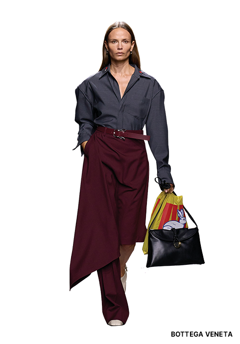 Trompe l’oeil 하이패션에서 주로 사용되던 트롱프뢰유 기법은 프랑스어로 ‘눈을 속이다’라는 뜻. 즉 착시 현상을 이용해 실제와 같은 생생한 효과를 내는 미술 기법이다. 이번 시즌엔 주로 보테가 베네타나 로에베에서 즐겨 사용하던 이 기법이 주를 이뤘다. 구겨진 셔츠처럼 모양이 잡힌 소재를 활용한 룩을 선보이기도 하고 로에베에서는 바람에 날리는 재킷과 셔츠 같은 형태 그대로를 활용해 룩을 완성했다. 이외에도 프라다, 아크네 스튜디오 등에서 트롱프뢰유 기법을 적극 활용했다. |