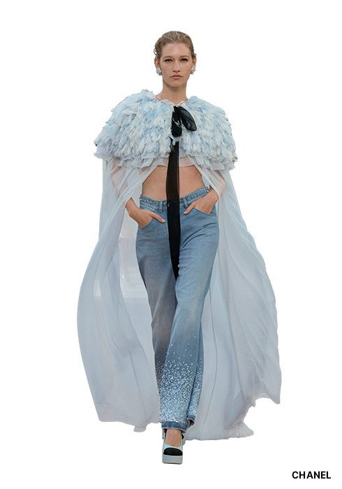 Romantic Feather 이번 시즌에 등장한 또 다른 소재는 깃털이다. 1960~70년대 귀족들의 헤어 장식으로 쓰인 깃털이나 셀럽들의 레드 카펫 혹은 파티 룩에 간혹 등장하는 화려한 깃털이랑은 조금 다르다. 로에베와 샤넬에서는 아주 작은 깃털을 구조적으로 연결하거나 신체 일부분에만 사용해 아주 여성적이고 우아하게 표현했다. 프라다도 오간자 소재에 깃털을 한 땀 한 땀 붙인 드레스를 깃털의 가벼움을 표현한 예술 작품으로 승화시켰다. 이 깃털들은 이번 로맨티시즘 트렌드를 더욱 강렬하게 표현한 매개체임에 틀림없다. |