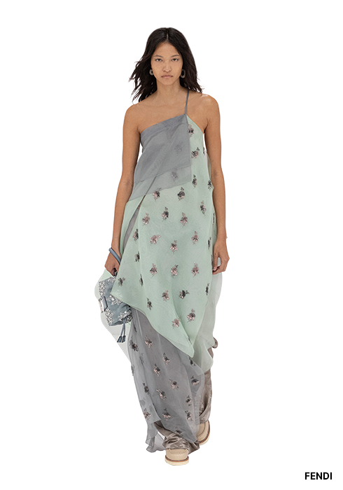 Layered Elegance 재작년부터 Y2K 패션 트렌드가 도래하면서 바지 위에 치마를 입는 것이 일상 속 자연스러운 패션이 되었다. 올해 역시 이러한 레이어드 패션을 심심치 않게 목격할 수 있다. 다만 이전에 조금 소녀스러웠던 무드에서 엘리건트한 무드로 바뀌었다는 것이 특징. 펜디와 디올 등에서는 시스루 드레스에 하이웨이스트 팬츠를 매치해 우아한 실루엣으로 팬츠와 스커트를 레이어드하는 방식을 보여주었다. 올해는 나이, 체형을 불문하고 꼭 한번 도전해볼 것. |