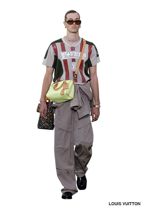 Block Core 남자를 지칭하는 속어인 ‘블록(block)’과 평범함을 멋으로 승화한 패션 용어 ‘놈코어(Normcore)’를 합한 단어 ‘블록코어(Blockcore)’ 트렌드는 최근 스포츠 브랜드와 하이패션 브랜드의 컬래버레이션으로 급부상했다. 그 때문에 길거리에서는 축구 유니폼을 일상복처럼 입는 것을 종종 볼 수 있었다. 올해 역시 이 트렌드가 계속될 예정이다. 루이 비통에서 선보인 축구 선수 유니폼 같은 티셔츠와 미우미우에서 선보인 체대생 유니폼 스타일을 참고하자. |