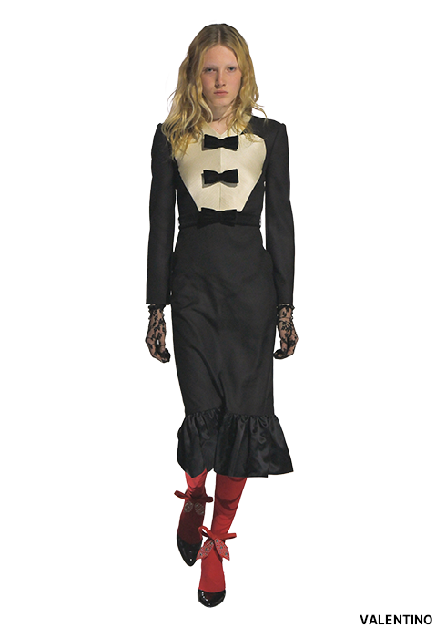 Neo Bourgeois 1970년대 부르주아들이 즐겨 입던 화려하고 과장된 패션이 다시금 메인 스트림에 등장했다. 한동안 이어지던 미니멀한 옷차림에 지쳤다면 시대적 터치를 가미한 새로운 네오 부르주아 트렌드가 반가울 수밖에 없을 듯. 과감한 스타일과 화려한 터치가 주 무기인 알레산드로 미켈레가 발렌티노에서 선보인 첫 쇼가 대표적. 화려한 러플, 푸시 보 등을 그만의 방식으로 자유자재로 활용해 부르주아 룩의 표본을 보여주었다. 셰미나 카말리가 합류한 끌로에 역시 보헤미안적이면서도 화려하고 여성스러운 룩을 선보였다. |