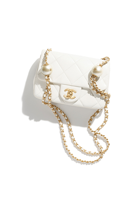 샤를 드 노아유(Charles de Noailles)와 마리-로르 드 노이유(Marie-Laure de Noailles) 부부의 빌라 정원에서 영감받아 탄생한 샤넬의 2024 S/S 레디투웨어 컬렉션. 이번 컬렉션에는 멀티 컬러, 블랙 또는 핑크 트위드 소재의 드레싱 가운과 다양한 컬러의 스트라이프 패턴 테리 소재 재킷이 등장한다. 이토록 경쾌한 룩들과 조화를 이루는 스트랩에 진주 악센트가 특징인 화이트 컬러의 미니 플랩 백도 눈길을 사로잡는다. 램 스킨으로 완성했으며, 전면의 CC 잠금장치가 포인트다. 문의 080-805-9628