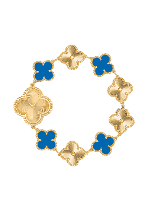 1968년 네 잎 클로버에서 영감받아 탄생한 반클리프 아펠의 알함브라(Alhambra) 주얼리 컬렉션은 그 자체로 행운을 상징하는 시대를 초월한 아이콘이다. 이 주얼리 컬렉션에서 주얼 워치인 스위트 알함브라 워치를 새롭게 선보인다. 기요셰 장식으로 완성한 옐로 골드 플라워와 블루 아게이트가 완벽하게 어우러져 아름다운 자태를 뽐낸다. 이 모든 플라워는 반클리프 아펠의 상징인 골드 비즈 테두리로 섬세하게 완성했으며, 블루 아게이트의 컬러 포인트가 특별함을 더한다. 스위스 쿼츠 무브먼트로 작동한다. 문의 1877-4128