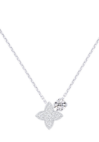 3 총 0.3캐럿의 라운드 브릴리언트 컷 다이아몬드를 세팅한 18K 화이트 골드 소재의 LV 다이아몬드 더블 펜던트.