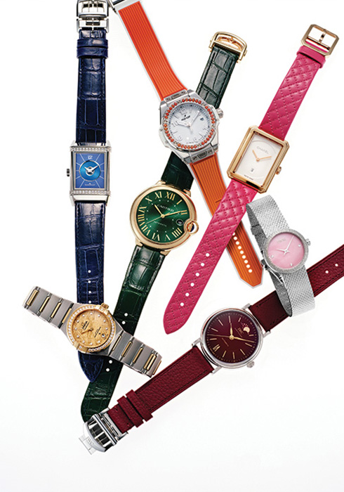 33mm 케이스와 화이트 다이얼, 36개의 오렌지 사파이어 세팅 베젤, 그리고 젬스톤과 컬러를 맞춘 오렌지 러버 스트랩의 조합이 경쾌한 분위기를 자아낸다. 2천만원대. 문의 02-540-1356
