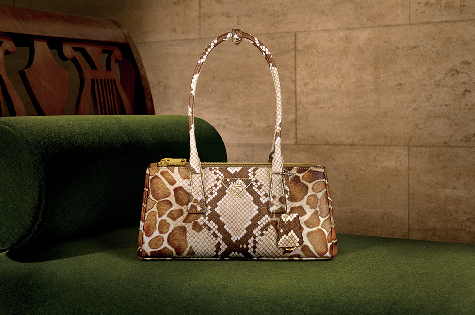 2 파이톤 레더와 롱 핸들, 가로로 긴 구조적 실루엣으로 완성한 갤러리아 백.