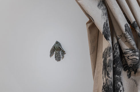 이은영의 작품에는 시간적 흐름이 흔적처럼 표시된다. 시간적 흐름은 작가가 다루는 도자라는 재료에 그 출발점을 둔다. 형태를 만들고 건조한 다음 구워 만드는 소성(燒成) 과정이 전제된다. 고온을 견디고 나온 결과물에 보이는 것은 재료의 변화뿐만 아니다. 2019년의 개인전 <밤을 달여 놓아두었다>(아마도예술공간)에서 작가는 누군가의 죽음을 기억하고 사라진 장소를 추억했다. 구체적인 출처 없이—기억은 모든 사람에게 출처로 보내주듯이, 우리는 오브제를 보고 지나온 시간을 상상한다. 그가 도자와 기성품, 자연물을 같이 선보이는 이유가 있다면, 시간적 흐름을 담기 때문이다. 소라껍데기의 시간, 시들기 시작한 꽃, 그리고 도자는 모두 멈춘 시간 안에 있다. 그렇다고 멈춘 시간 안에 아무것도 없는 것은 아니다. 오히려 지나온 시간들이 현재에 오버랩(overlap)되어, 보는 사람에 의해 없는 주인의 자리에 타자가 대입된다. 타자가 대입하는 대상은 본인이 될 수도 있고, 본인과 친한 사람이 될 수도 있다. 이때 시간은 현재와 과거가, 나와 타자 사이에서 또다시 겹치게 된다.
