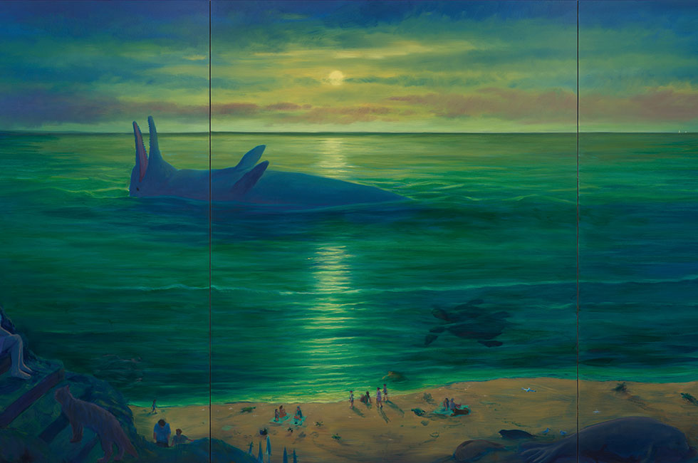 최민영, ‘밤 수영’, 2024, Oil on linen, 220×680cm, Photo by Peter Mallet, 이미지 제공_스페이스K