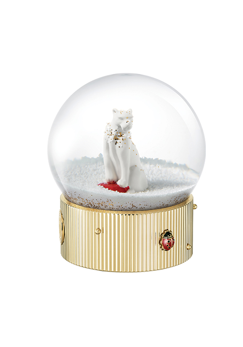 포즈를 취하는 팬더와 레드 박스가 담긴 디아볼로 드 까르띠에 스노 글로브 2백만원대 까르띠에. 문의 1877-4326
