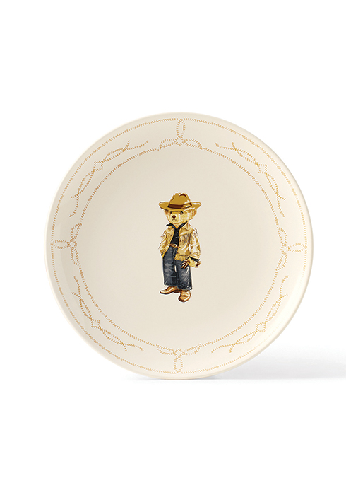웨스턴 웨어 룩을 입은 아이코닉한 폴로 베어가 그려진 포슬린 디저트 플레이트 4개×1세트, 19만원대 랄프 로렌 홈. 문의 02-6004-0221
