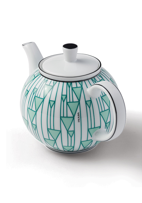 기하학적인 패턴으로 식탁 위 포인트가 되어줄 비엔나 그린 컬러 도자기 티포트 가격 미정 프라다. 문의 02-3442-1831
