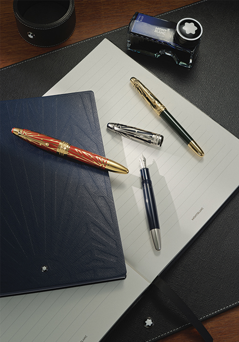 레더 데스크 패드 66만원, 레더 라운드 데스크 트레이 스몰 24만원, 병 잉크 3만5천원, 마이스터스튁 오리진 #163 노트 15만원. (왼쪽부터 차례대로) 마이스터스튁 오리진 컬렉션 솔리테어 르그랑 만년필 |