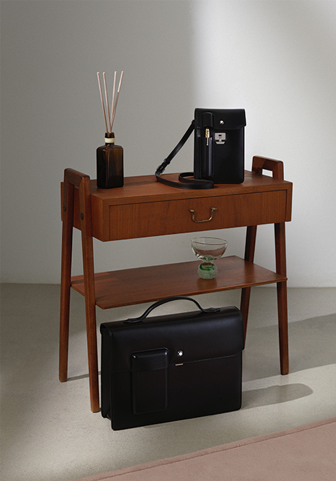 마이스터스튁 스몰 메신저 백 고급스러운 블랙 레더 소재로 소지품을 수납할 수 있는 내부 오픈 포켓과 필기구를 안전하게 보관할 수 있는 빈티지 펜 파우치 스타일의 외부 수납공간을 갖추었으며, 스타일리시하면서도 실용적인 디자인으로 완성했다. 2백38만원. 마이스터스튁 브리프 케이스 마이스터스튁 100주년을 기념해 외부에는 빈티지 펜 파우치의 디자인에서 영감받은 필기구 전용 케이스를 장착해 3개의 필기구를 수납할 수 있다. 내부에는 13인치 노트북 수납공간과 지퍼 포켓 1개, 오픈 포켓 2개를 포함한 추가 수납공간이 있다. 4백13만원. |