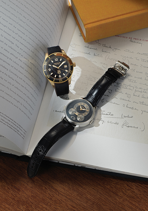 5백 피스 리미티드 에디션으로, 43mm 스테인리스 스틸 케이스와 교체 가능한 앨리게이터 프린트 블랙 카프 레더 스트랩을 매치했다. 블랙 다이얼의 루미너스 프린트는 1920년으로 거슬러 올라가는 필기구 도면의 모습을 드러내며, 마이스터스튁 캡에서 볼 수 있는 몽블랑 스노우 캡 엠블럼을 동일한 사이즈로 타임피스의 크라운에 더했다. 몽블랑 모노푸셔 크로노그래프 무브먼트 MB R200으로 구동한다. 1천2백76만원. 문의 1877-5408, www.montblanc.com