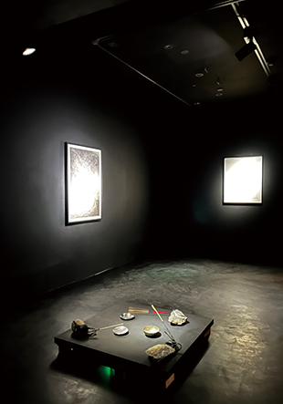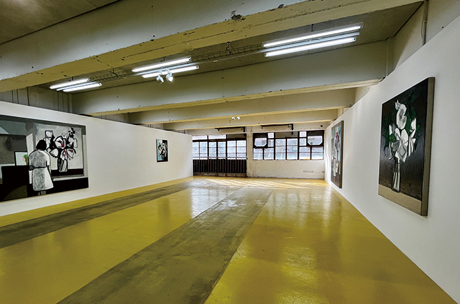 11 홍콩섬 남서부 애버딘의 한 고층 건물에 자리한 엠프티 갤러리(Empty Gallery)의 그룹전 <Le Contre-Ciel> 설치 풍경. 르네 도말(Rene´ Daumal)의 시에서 영감받아 뉴욕에서 활동하는 올리비아 샤오(Olivia Shao)가 큐레이팅을 맡았다. 12 애버딘의 공장 건물 안에 들어서 있는 홍콩 갤러리 키앙 말랭그(Kiang Malingue)에서 열리고 있는 류샤오후이(Liu Xiaohui) 작가의 전시 <Flowers of Hong Kong> 풍경.