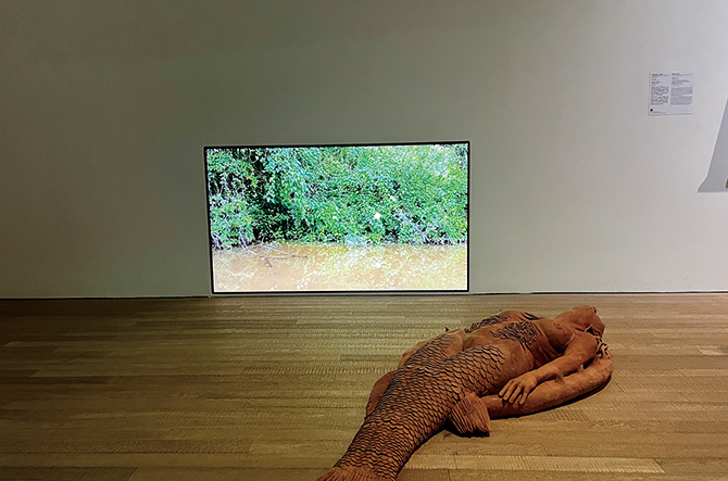 2 생태 환경과 여성을 주제로 한 기획전 <Green Snake: women-centred ecologies> 설치 모습. 2023년 12월 20일부터 지난 4월 1일까지 열렸다. 유럽 열강들의 식민 지배로 파괴된 자연과 남미 원주민에 대한 그릇된 환상을 꼬집는 아르헨티나 작가 아드리아나 버스토스(Adriana Bustos)의 작업 ‘Pejerreina’(2023). <Green Snake: women-centred ecologies>에서 선보였다.