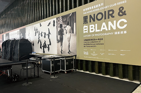 4 M+와 프랑스 아트 축제 르 프렌치 메이(Le French May)의 공동 전시 <누아르 & 블랑: 사진 이야기> 포스터가 인쇄된 커다란 패널. 프랑스 국립도서관(BnF)의 명성 높은 사진 소장품 컬렉션에서 선별한 2백50점 이상의 작품이 포함된 이 사진전은 사진 매체에 헌정된 M+ 최초의 전시로 오는 7월 1일까지 계속된다.