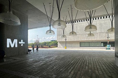 5 ‘뮤지엄, 그 이상(+)’을 품어내고 싶다는 열망을 담은 이름을 지닌 M+는 동시대 최고의 건축가 듀오가 이끄는 HdM과 협업해 매머드급 건축 프로젝트를 진행했고, 2021년 늦가을 드디어 대중 앞에 선보였다. M+가 들어선 구룡반도의 땅도 매립지를 문화 예술촌인 시주룽 문화 지구(WKCD)로 탈바꿈하는 정부 차원 프로젝트의 핵심이다.