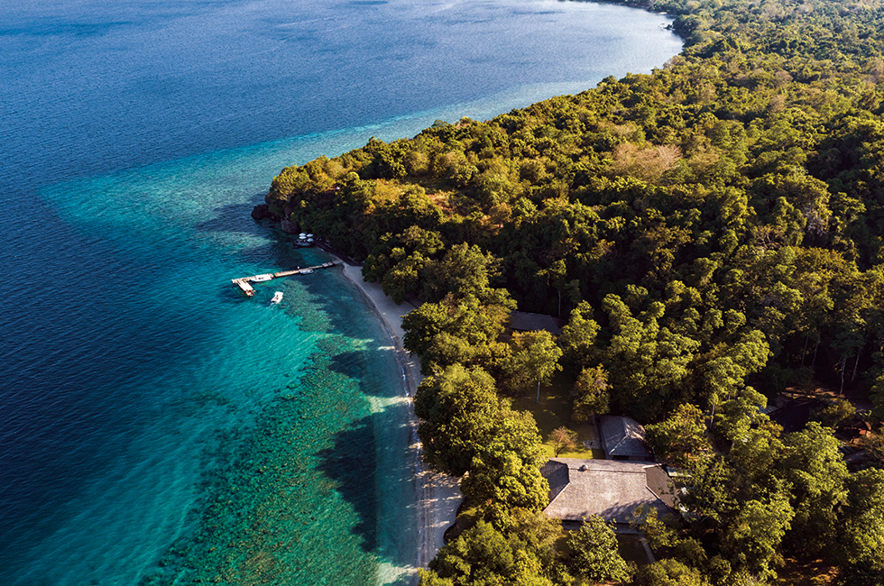 잘 알려졌듯 인도네시아는 무려 1만7천여 개의 섬이 5,000km에 걸쳐 늘어선 세계 최대 ‘군도의 나라’다. 그래서 숨어 있는 여행지가 많다지만 모요섬은 이곳을 발견한 초기 모험가들의 ‘희열’이 상상될 만한 외진 곳이다. 시간의 흐름이 절로 느려지는 듯 평온한 겉모습이지만, 놀랍도록 풍요로운 해양 생물을 가까이에서 볼 수 있는 다양한 스노클링과 다이빙 포인트를 지닌 바다, 사슴이 노니는 울창한 숲, 그야말로 ‘날것’ 그대로의 야생이 숨 쉬는 섬이다. 뒤로는 짙은 녹음을 병풍처럼 두르고, 앞으로는 언제든 바다를 바라볼 수 있는 모요섬의 해변에 사파리 텐트 17채가 사이좋게 펼쳐져 있다. ‘평화로운 숲’이라는 아만와나의 뜻이 절로 수긍되는 풍경이다.