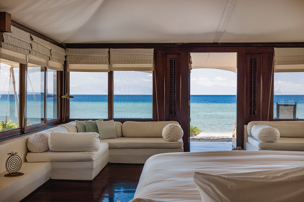 기다란 데이베드에 느긋하게 누워 창밖을 바라보면 ‘멍 때리기’는 가장 쉬운 일이 되어버린다. 어떠한 터키석도 당해내지 못할 만큼 맑고 영롱한 청록빛 바다를 머금은 아만와나만(Amanwana Bay)이 아닌가. 모요-사톤타 국립공원의 일부로, 산호초가 풍요롭게 터를 잡고 있는 플로레스해의 36,000ha에 걸친 때 묻지 않은 천혜의 자연. 가끔은 바깥에서 바스락거리며 돌아다니는 원숭이의 존재가 느껴지고, 이따금 자신의 이름을 증명이라도 하듯 “게코~”라고 우는 게코도마뱀의 소리가 낯설지만, 어느새 텐트라는 보금자리 속 일상에 익숙해졌다. 삼림욕의 싱그러운 에너지와 짭조름한 바다 내음의 하모니는 긴장을 늦추고 서서히 기분 좋은 심심함에 빠져들게 해주었다. 프랑스 작가이자 철학자 롤랑 바르트가 말했던 ‘꿈꿔온 게으름’의 맛보기 정도는 될지도 모르겠다.