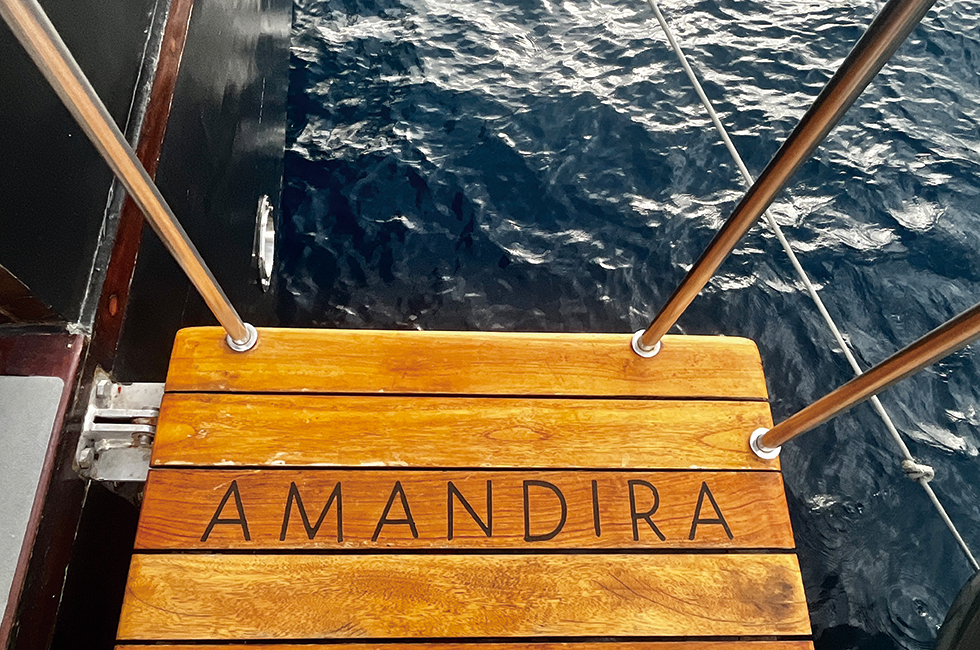 아만와나에는 이렇듯 대자연의 소리와 풍경만을 벗 삼으며 지내는 ‘무위’의 행복을 느끼려고 반복적으로 찾는 이들이 꽤 있는데, 거의 해마다 찾은 지 10년이 훌쩍 넘었다는 한 모자(母子)도 마타 지투 폭포로 가는 길에 만났다. 해변을 바라보는 키 큰 나무 옆 테이블이 있는 명당 자리에 앉아 있노라면 투숙객들 외의 이방인(?)을 가끔 목격할 수도 있다. 다름 아닌 자신의 배로 이 바다, 저 바다를 누비면서 항해하는 요트족이다. 필자도 아만와나에 체류할 때 마치 신기루처럼 요트가 해안을 향해 천천히 다가오는 걸 봤는데, 프랑스에서 2년째 프라이빗 크루즈를 하고 있다는 한 커플의 깜짝 방문이었다. “와, 부러운 인생이네~(what a life!)”라는 말이 절로 나오는 그들의 여정만큼은 아니겠지만 아만와나에서의 정점은 역시 날렵하고 단단한 프라이빗 요트 아만디라 1박 2일 승선이었다.