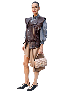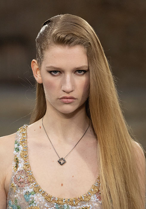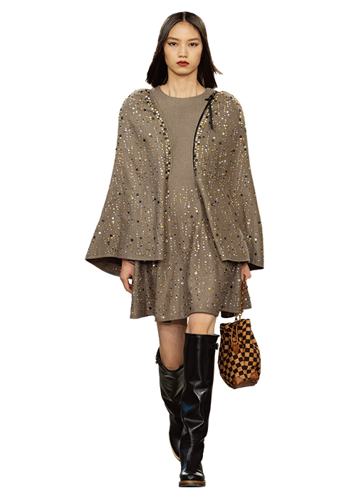 오버사이즈 실루엣은 이번 루이 비통의 크루즈 패션쇼를 지배했다. 거대하고 위용 있는 수트 재킷과 빈티지 스타일에서 영감받은 듯한 버블 스커트, 구조적인 날렵함이 돋보인 스트럭처드 칼라, 한껏 부풀린 소매 등은 압도적인 실루엣으로 루이 비통이 보여주고자 하는 레트로와 퓨처리즘의 조화를 확실하게 보여주었다. 이어진 또 다른 스테이지에서는 비대칭적이고 자연스럽게 드레이프되어 흘러내리는 로맨틱한 블라우스와 승마복에서 모티브를 딴 조거 팬츠와의 매치가 눈길을 끌었으며, 상반된 텍스처의 믹스 매치, 단순함과 과도한 디테일의 어우러짐과 더불어 프린지와 레이스, 프릴, 시스루 폴카 도트 등 페미닌하고 사랑스러운 장식이 니콜라 제스키에르 특유의 카리스마 넘치는 코스튬으로 재탄생되어 감탄을 자아내기도 했다. 가우디의 건축물에서 볼 수 있는 소용돌이치는, 때로는 뒤틀리고 서로 엉킨 듯한 초현실적인 디자인이 루이 비통의 패션을 통해 재현된 느낌이다. 시공간을 초월하며 시대와 스타일의 아름다우면서도 쇼킹한 조화를 보여준 니콜라 제스키에르의 2025 루이 비통 크루즈 패션쇼. 스페인의 열정, 1980년대의 향수, 클래식과 스포티함의 조화, 미래지향적인 퓨처리즘에 대한 기대… 이 모든 것들이 가우디의 동화적인 구조물과 어울려 보는 이들을 새로운 여정으로 이끌었던 매혹적인 순간들. 니콜라 제스키에르의 또 하나의 멋진 이정표로 기억될 듯하다.