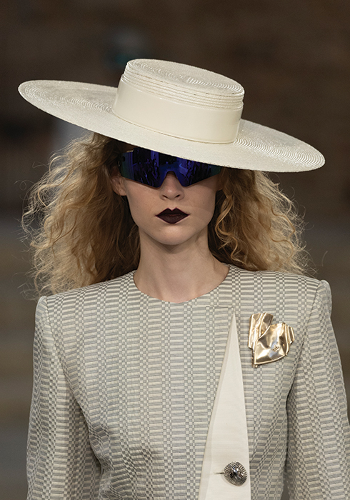 1 과장된 빅 숄더와 날렵한 모자로 강렬한 인상을 준 오프닝 의상.