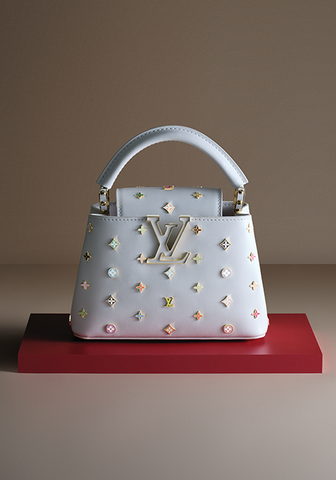 루이 비통 X 무라카미 컬렉션 백으로 일본 예술가 무라카미 다카시를 대표하는 팝한 색상을 경쾌하고 생기 있는 모노그램 모티브로 표현했다. 천연 카우하이드 가죽 소재의 LV X TM 스피디 반둘리에 25 가격 미정 루이 비통. 문의 02-3432-1854 |