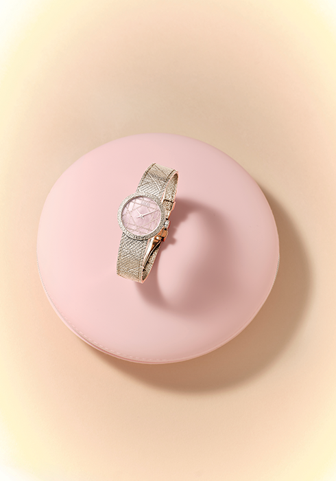 지름 25mm 스틸 케이스에 총 0.03캐럿의 13개 브릴리언트 컷 다이아몬드를 세팅한 크라운과 메탈릭 까나쥬 인그레이빙이 돋보이는 핑크 머더오브펄, 새틴 & 까나쥬 패턴의 스틸 브레이슬릿을 매치해 사랑스럽고 여성스럽게 완성한 라 디 마이 디올 타임피스 가격 미정 디올 타임피스. 문의 02-3280-0104 |