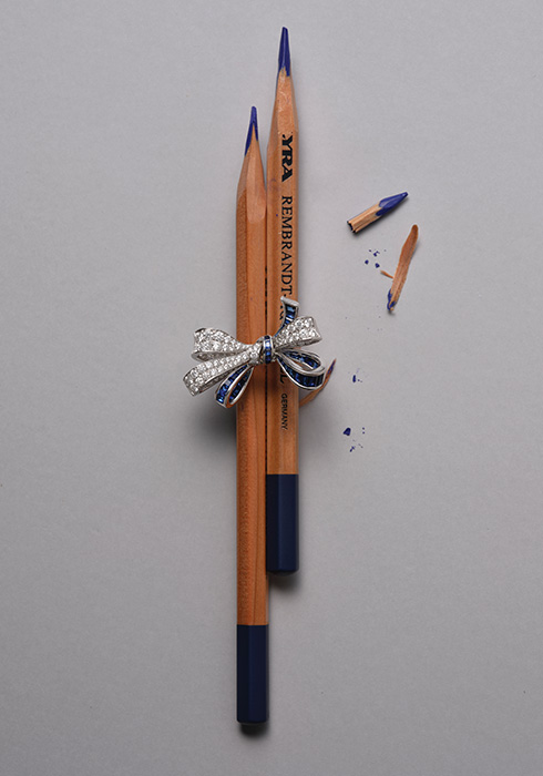 섬세하고 디테일한 세공 기술을 엿볼 수 있는 리본 모티브로 완성한 대표 컬렉션의 링. 총 2.02 캐럿의 다이아몬드를 세팅하고 2.17캐럿의 블루 사파이어로 포인트를 더한 그라프 틸다의 보우 컬렉션 사파이어와 다이아몬드 멀티셰이프 링 6천3백76만원 그라프. 문의 02-310-1320