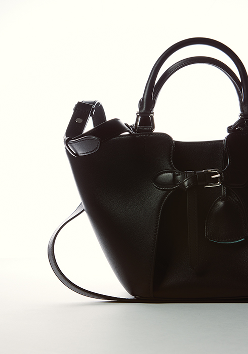 말안장 장식에서 영감받은 벨트 디테일 등의 디자인에 간결한 2개의 톱 핸들을 추가했다. 탈착 가능한 숄더 스트랩으로 실용성을 높인 풀 그레인 송아지가죽 소재 더 랄프 미니 토트백. 32×19×10cm, 3백90만원대 랄프 로렌 컬렉션. 문의 02-3467-6560