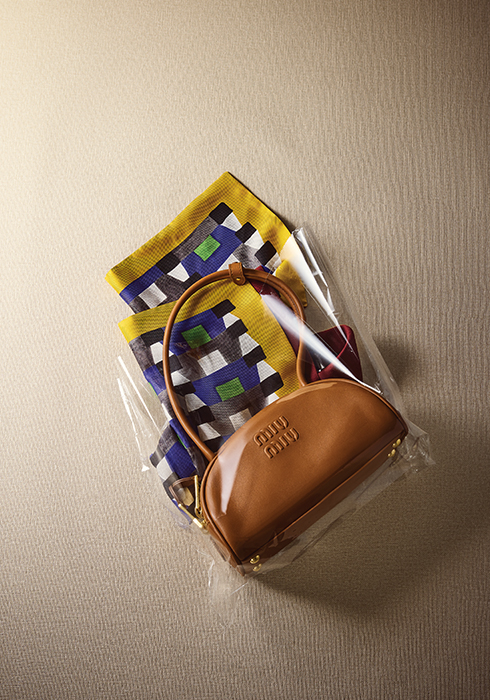 기하학 패턴의 실크 스카프 35×137cm, 볼링 백에서 착안한 디자인과 유연한 실루엣의 보 백 23×11×8cm, 모두 가격 미정 미우미우. 문의 02-541-7443