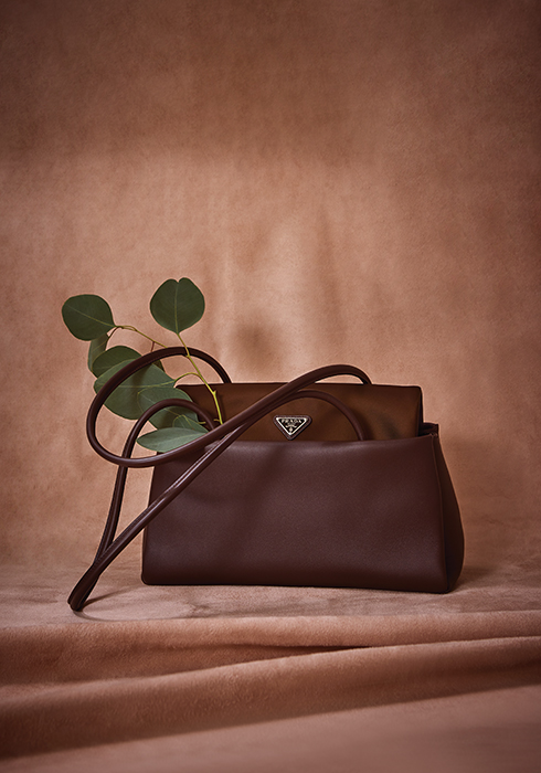 트라이앵글 로고와 리나일론 플랩, 롱 핸들이 조화로운 패시지 미디엄 가죽 백. 39×19×12cm, 가격 미정 프라다. 문의 02-3442-1831