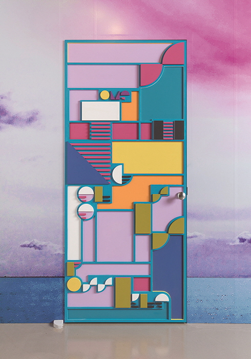 ‘예술의 섬’으로 불리는 일본 나오시마에는 ‘필수 코스’처럼 여겨지는 카페가 하나 있다. 착시 효과를 일으킬 정도로 현란한 줄무늬와 물방울무늬로 도배된 공간인데, 이 개성 만점 카페는 2009년 베니스 비엔날레에서 개인 작가에게 주어지는 최고의 영예인 황금사자상을 받은 토비아스 레베르거의 ‘작품’이다. 그의 비엔날레 수상작도 비슷한 느낌의 카페였는데, 공통적으로 제1차 세계대전 당시 영국 전함의 위장용 무늬에서 착안했다는 ‘대즐 카무플라주(dazzle camouflage, 위장 도색)’ 기법을 반영했다. 2년 전쯤에는 낙동강 하구에 자리 잡은 을숙도의 부산현대미술관에도 그의 카페가 들어섰다. 토비아스 레베르거는 ‘디자인 카페’를 연상시키는 작품으로 응용 예술 작품에 대한 보수적 경계심을 깨뜨렸다. 이렇듯 그는 조각-설치-건축, 미술-디자인, 예술-일상, 미학-기능 등 장르와 역할을 아우르는 이분법적인 경계 사이에서 ‘변화(transformation)’를 모색해온 작가다. 서울 한남동에 자리 잡은 갤러리바톤에서 진행 중인 <Truths that would be maddening without love>는 규모는 크지 않지만 토비아스 레베르거의 폭넓은 작품 세계를 가늠하고 시각적 즐거움을 누릴 수 있는 경험이다. 전형적인 ‘하얀색 입방체(white cube)’를 벗어난 여러 개의 방으로 구성된 전시 공간부터 흥미롭다. 푸르른 바다와 하늘이 펼쳐진 벽에 달린 문을 열고 들어가면 또 다른 색과 형태, 결로 점철된 이미지들이 등장한다. 이렇게 5개의 문이 계속 다른 공간으로 이끄는데, 문 위에는 공통적으로 ‘Something Else is Possible’이라는 문장이 퍼즐 조각처럼 새겨져 있다. 작가의 설명에 따르면 ‘다른 세계, 가능성’ 등을 의미하는 ‘문’과 ‘창문’은 그에게 매력적인 소재라고. 그런데 자세히 보면, 문을 열고 들어가는 방향의 벽면에는 주로 풍경 등 자연적 감성이, 다시 나올 때 보이는 방향의 벽면에는 인상이 강한 동물이나 인물 등 대조적인 감성이 흐르는 걸 발견할 수 있다. “잔잔함-역동성의 대비도 있겠지만 일반적-개인적, 감성적-개념적 등의 다양한 변증법적 방식으로 읽힐 수 있어요.” 작가는 ‘문’ 자체에 담긴 함의와 마찬가지로 이 역시 ‘다름(otherness)’에 대한 얘기를 하고 있다며 자신의 일관된 주제 의식을 설명했다. 문을 다 통과하면 3D 프린팅 기술로 만든 앙증맞은 오브제들이 ‘재떨이’라는 공통된 이름으로 나오고, 이는 작가 특유의 카페처럼 사이키델릭한 공간으로 마무리된다. 작품의 조합이 전시명으로 읽히는 공간도 따로 있는데, 여기서 길가 풍경을 바라보는 운치도 제법이다.
