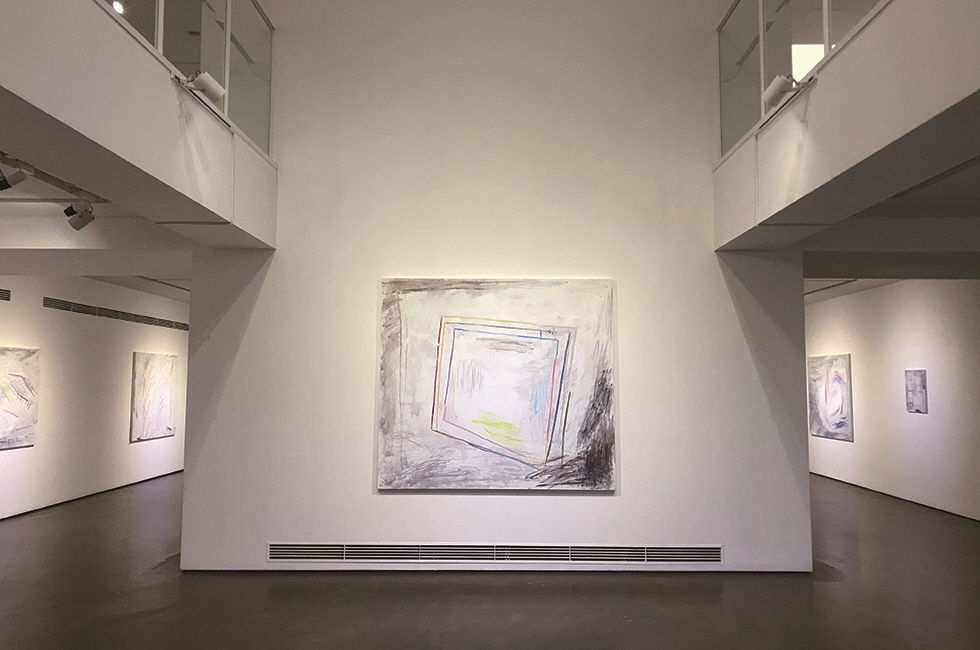 무심코 그린 듯한, 혹은 제멋대로 붓을 휘두른 듯한, 그래서 ‘미완성’이 아니냐는 얘기도 종종 듣는 그림. 하지만 특유의 노스탤지어 감성 때문인지 왠지 모르게 안아주고 싶은, 보듬어주고 싶은 느낌을 자아내기도 하는 묘한 매력을 품은 그림. 독일 뒤셀도르프를 기반으로 서울을 오가면서 작업하는 한국인 작가 샌정의 작품에 대해 ‘팬’들은 이렇게 말한다. 회화에 대한 세상의 시선이 어떻든 간에 추상과 구상의 경계에서 꾸준히 ‘캔버스’에 집중해온 그의 신작을 이번에는 갤러리가 아닌 미술관에서 만날 수 있다. 서울 종로구 수송동에 자리한 OCI미술관에서 진행 중인 <VERY ART>라는 전시다(오는 5월 16일까지). 1층에서 3층까지 공간을 그의 흐릿한 그림들이 담백하게 채우고 있다. 그의 신작들은 더 흐릿해졌고, 실 몇 가닥을 풀어놓은 듯 보다 단순해졌으며, 한층 더 쓸쓸해 보이기도 한다. 멀리서 보면 잔잔한 듯하지만 가까이서 한참 응시하고 있노라면, 파장 같은 것도 느껴진다. 이번 전시를 개최한 OCI미술관 김소라 큐레이터의 말을 빌리자면 “언뜻 모노톤 화면이 균질하게 정돈되어 있는 듯하지만, 물감의 두께감, 선의 갈라짐, 색의 충돌 등 회화적 요소들 때문에 긴장감으로 가득 차 있다”고. 미세하지만 분명히 존재하는 긴장과 균열이 섬세하게 파문을 일으킨다는 것이다. 작가 스스로는 이 미묘한 긴장감을 ‘부유감’으로 표현한다. 감각과 사유가 서로를 끊임없이 탐색하고 파고들다가 그 지난한 과정이 마침내 가라앉을 때, 캔버스 위에 침전한 사유가 그의 ‘그림’이 된다는 설명이다. 언뜻 이해하기 힘든 얘기지만, 그의 사유는 분명 내면 세계로 더 깊숙이 들어가는 듯하다. 한때 함축된 자연, 인물의 형상처럼 보이는 구상적인 요소를 녹이기도 했던 그의 작업 세계가 무채색 배경에 단순한 선과 면의 형태만 남은 추상으로 변모해온 이유도 비슷한 맥락에서 이해할 수 있지 않을까. 흥미롭게도 그는 이번 전시를 ‘로맨틱 추상’이라는 이름으로 부르고 싶다고 했다. 늘 자신의 관심에서 한 자리를 차지했던 18세기와 19세기 낭만주의와 연결되는 맥락에서 자신만의 ‘새로운 로맨티시즘’에 다가서는 자세로 작품에 임했기 때문이란다. 샌정의 로맨티시즘은 어째서 담백한 슬픔을 머금고 있는 걸까? “이번 신작들에는 ‘의도적인’ 단조로움 뒤로 기대하지 않았던 난해함이 의미심장하게 공존하는데, 이처럼 상반된 두 세계가 이런저런 감정과 인상을 불러일으킬 수 있습니다. 명상적인 무드를 넘어 캔버스를 지켜보는 이들에게는 때때로 고적하게 다가올 수도 있겠지요.” 역시 그다운 답이다.