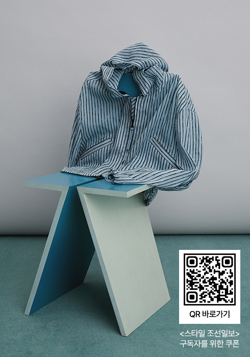 스트라이프 패턴의 후드 점퍼 67만5천원. 모두 래트. 문의 1800-5700