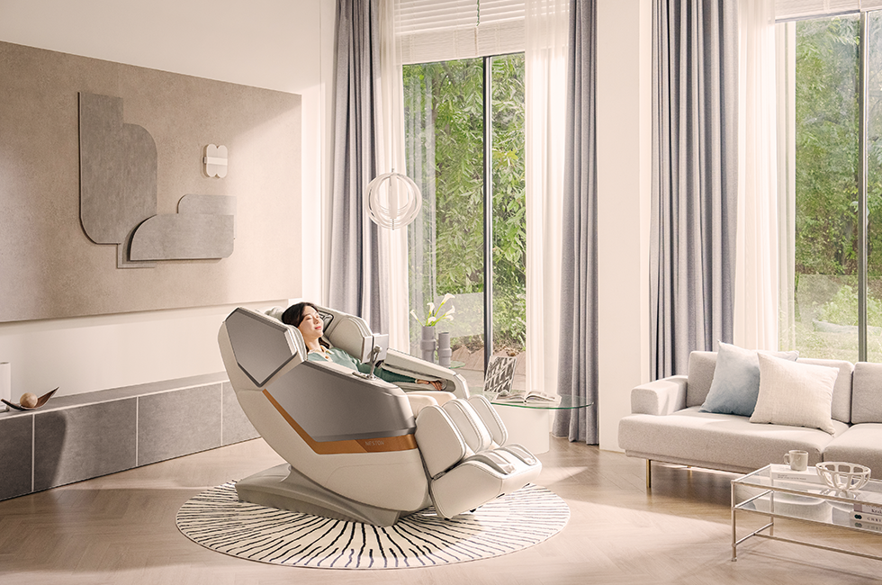 “인체 곡선에 무리가 없는 166˚ 각도로 누운 편안한 상태에서 허리를 들어 올려 마사지하는 전신 스트레칭에 특화된 마사지체어다.”