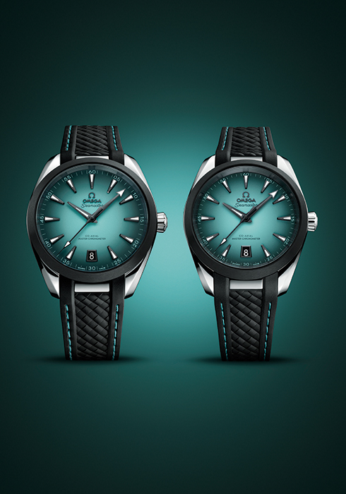 오메가는 지난번 터쿼이즈 컬러 디테일이 들어간 월드타이머 씨마스터 컬렉션의 인기에 힘입어 상용화된 버전의 터쿼이즈 씨마스터 아쿠아 컬렉션을 선보인다. 케이스 사이즈는 38mm와 41mm, 두 가지로 출시해 선택의 폭을 넓혔다. 이전과 같이 무광 블랙 세라믹 베젤에 시선을 사로잡는 청록색 바니시 다이얼이 특징. 블랙 PVD 코팅 아워 마커와 핸즈는 화이트 슈퍼루미노바Ⓡ로 채워 어두운 환경에서도 푸른빛을 발산한다. 블랙에 포인트를 더하는 청록색 스티칭은 전작 그대로 따왔다. 41mm 모델은 60시간의 파워 리저브를 제공하는 코-액시얼 마스터 크로노미터 칼리버 8900을, 38mm 모델은 55시간 파워 리저브를 제공하는 칼리버 8800을 탑재했다. 문의 02-6905-3301