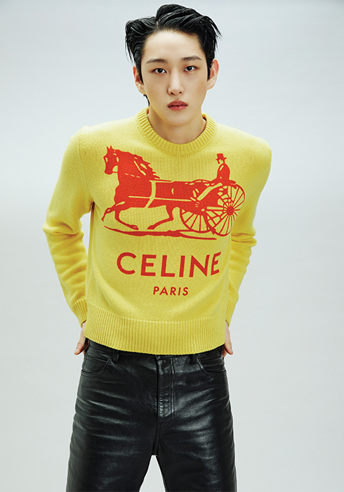 캐시미어 크루넥 스웨터 2백95만원, 램 스킨 스트레이트 팬츠 5백70만원