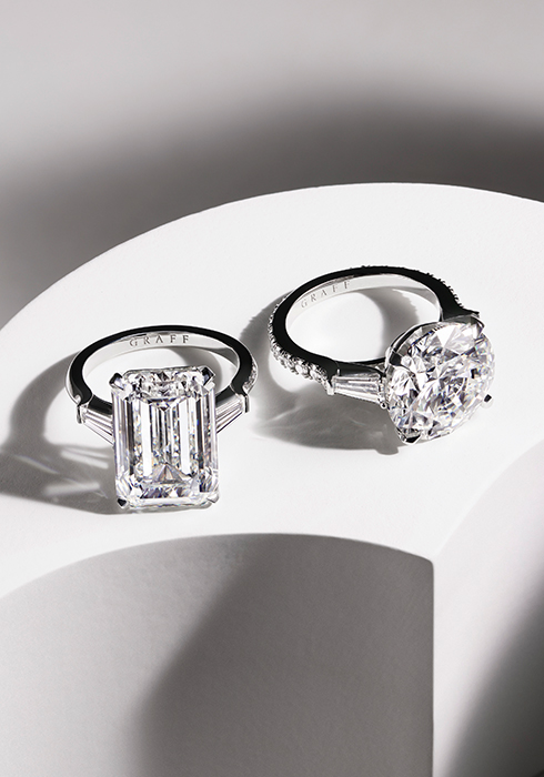 영원한 사랑, 그리고 변치 않는 마음을 표현한 그라프의 ‘브라이덜 주얼리 컬렉션’. 다이아몬드에 진심인 브랜드인 만큼 최고급 다이아몬드를 직접 선별하는 것은 물론, 스톤 본연의 광채와 가치를 극대화하기 위해 숙련된 장인들이 모든 공정을 수작업으로 완성한다. 그중에서도 독특한 실루엣을 자랑하는 에메랄드 컷의 ‘프로미스 인게이지먼트 링’, 다이아몬드를 파베 세팅한 밴드에 큼직한 라운드 컷 다이아몬드를 세팅한 ‘프로미스 라운드 인게이지먼트 링’을 추천한다. 가격 미정. 문의 02-2150-2320