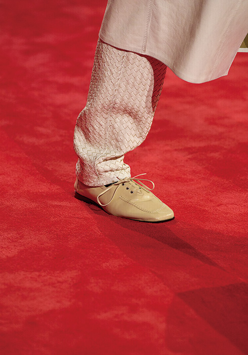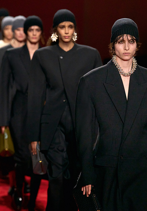 쇼의 형태에서도 일관성을 유지했다. 구조적이면서 세련된 실루엣의 블랙 수트에서 과감한 퍼 형태의 소재와 볼륨감 있는 실루엣의 의상으로 이어지는 쇼는 정제된 미학에서 점차 장엄함으로 고조되는 오페라적 내러티브를 따라간다. 이는 전설적인 오페라 소프라노 마리아 칼라스(Maria Callas)와 그녀를 자신의 영화에 캐스팅한 영화감독이자 시인, 소설가 피에르 파올로 파솔리니(Pier Paolo Pasolini)가 그려낸 급진적 예술과 비전통적 사랑을 환기한다. 우리는 모두 보테가 베네타와 크리에이티브 디렉터 루이스 트로터, 그리고 장인들이 만들어낸 오페라에 초대받은 셈이다. 이처럼 이번 컬렉션은 집단적 표현에 바치는 헌사다. 즉 마음과 정신, 그리고 손이 어우러져 완성되는 경이로운 협업에 대한 찬사이며, 그 순간에 초대된 경험이다.
