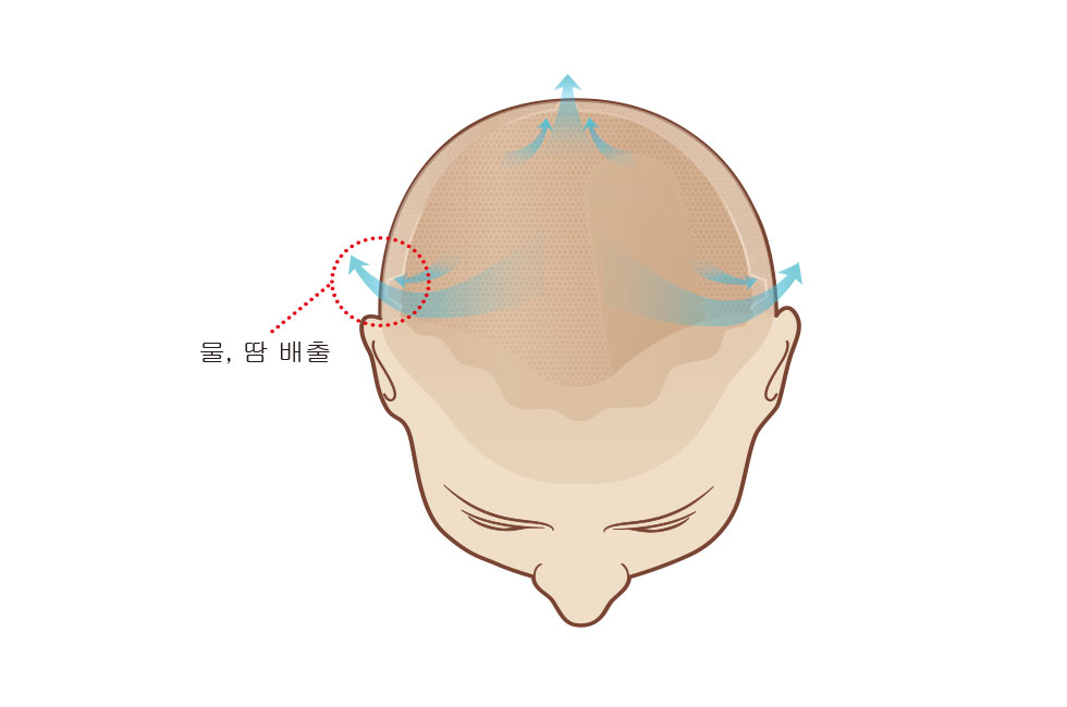 고정식 가발은 하루 종일, 매일 내 피부에 부착해 사용해야 하기 때문에 그 어떤 가발보다 가볍고 산뜻한 착용감이 중요하다. 하이모에서는 고정식 가발 최초로 워터홀을 적용한 탑 시크릿을 선보여 이 부분에 대한 높은 만족도를 이끌어내고 있다. 가발 베이스 소재의 둘레에 세 곳의 워터홀을 배치해 더위와 운동으로 인한 땀 배출을 원활히 하고, 가발을 착용한 채 샤워나 목욕을 한 뒤 물이 쉽게 빠지도록 도와준다. 게다가 샤워 후 모발 건조 시 물기가 빠르게 사라져 더욱 빠른 스타일링이 가능하다.